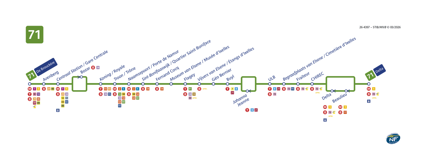 Bus 71 : De Brouckère ↔ Delta (horaires du bus 71 // plan du bus 71)