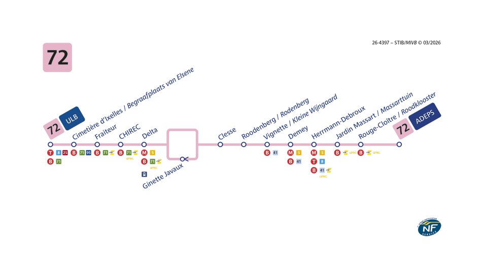 Bus 72 : ADEPS ↔ ULB (horaires du bus 72 // plan du bus 72)